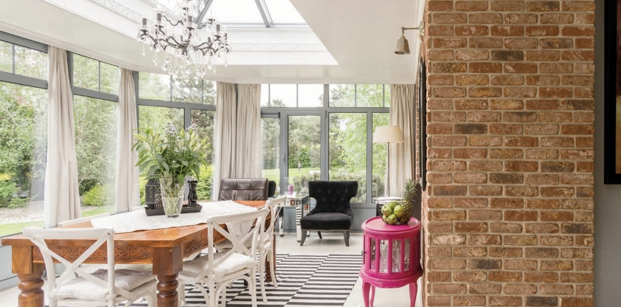 Domowa oranżeria zapewni światło, ciepło, ochronę przed deszczem i dodatkową przestrzeń. Docenimy jego urok szczególnie zimą, gdy aura nie zachęca do przebywania na dworze. a nam marzy się poranna kawa wypijana w otoczeniu zieleni.