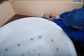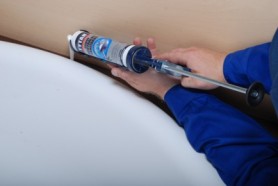 W sytuacji, gdy brak jest dostępu do uszczelnianej powierzchni z boku (wanna dotyka niemal do samej ściany), dzięki Aplikatorowi 360® istnieje możliwość dotarcia z silikonem np. od góry.