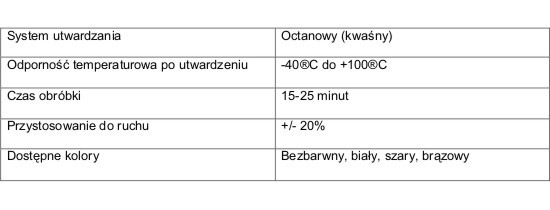 Po stwardzeniu nie kurczy się i nie rozszerza (nie zalecany do elastycznych uszczelnień)