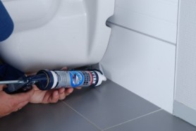 Uszczelnienie powierzchni pod muszlą klozetową może być niemożliwe, gdy ta zawieszona jest tuż nad powierzchnią podłogi. Dzięki możliwości wygięcia pod dowolnym kątem Aplikatora 360® istnieje możliwość nałożenia silikonu nawet tuż przy samej podłodze.