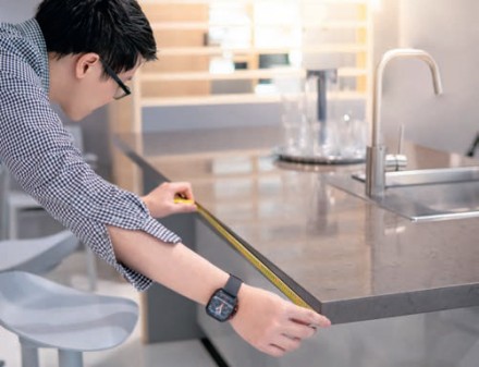 Planując strefę roboczą w kuchni, wymiarem, do którego przywiązujemy najmniejszą wagę, jest szerokość blatów roboczych. Minimalna wynosi 60 cm i przeważnie takie stosujemy. Jednak wygodniejsze, pozwalające na większą swobodę podczas gotowania są szersze blaty – jeśli miejsce na to pozwala, wybierzmy 70-80 cm. Szerszego blatu wymaga warsztat pracy usytuowany na kuchennej wyspie. Dodatkowe centymetry można też wykorzystać na ustawienie kuchennych sprzętów, z których często korzystamy w czasie przyrządzania posiłków. O tym, jaka ma być szerokość blatu, powinniśmy pomyśleć już na etapie wyboru materiału na blat – najbardziej popularne laminowane mają zazwyczaj do 120 cm szerokości, drewniane do 130 cm, a z modnego kwarcytu nawet 150 cm. Kamienne przycina się z płyt na żądany wymiar. Decydując się na określoną grubość blatu, zwróćmy uwagę nie tylko na czynnik estetyczny – może mieć ona znaczenie podczas montażu zlewozmywaka czy płyty kuchennej. Najlepiej wybrać blat o grubości, która będzie korelowała z zaczepami zlewozmywaka. Typowe przystosowane są do blatów, które mają od 2,8 do 4 cm grubości.