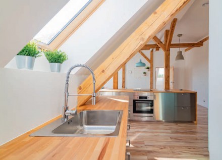 Strefa robocza w kuchni należy do miejsc najbardziej narażonych na zabrudzenia i zniszczenie. Wygodne w utrzymaniu czystości będą blaty odporne na wilgoć czy zarysowania. Takie właściwości mają twarde blaty kamienne, np. granitowe o nasiąkliwości poniżej 0,5%. Blaty marmurowe są bardziej nasiąkliwe i łatwo się plamią, np. sokami owocowymi. Warto je zaimpregnować podobnie jak trawertynowe. Do trwałych należą kompozytowe. Wpływ na ich wysoką odporność na uszkodzenia mechaniczne i wilgoć ma pozyskiwany ze zmielonej skały wodorotlenek glinu. Na tego typu zagrożenia odporne są też konglomeraty, zwłaszcza granitowe. Jeśli zdecydujemy się na blaty laminowane, wybierzmy pokryte najwyższej jakości żywicami melaminowymi. Będą odporne na wilgoć, zarysowania i odpryski. Wykorzystując blaty drewniane, sięgajmy po wykonane z twardych gatunków drewna, np. dębiny, teku lub iroko. Ze względu na wilgoć zaleca się stosować na blaty drewno klejone. Proces klejenia likwiduje naturalne naprężenia włókien, co zapobiega wypaczaniu i pękaniu drewna. Jeśli stosujemy stalowe lub szklane, do krojenia na nich koniecznie wykorzystujmy deski. Na ich powierzchni widać każdą kroplę wody, co utrudnia ich utrzymanie w czystości.